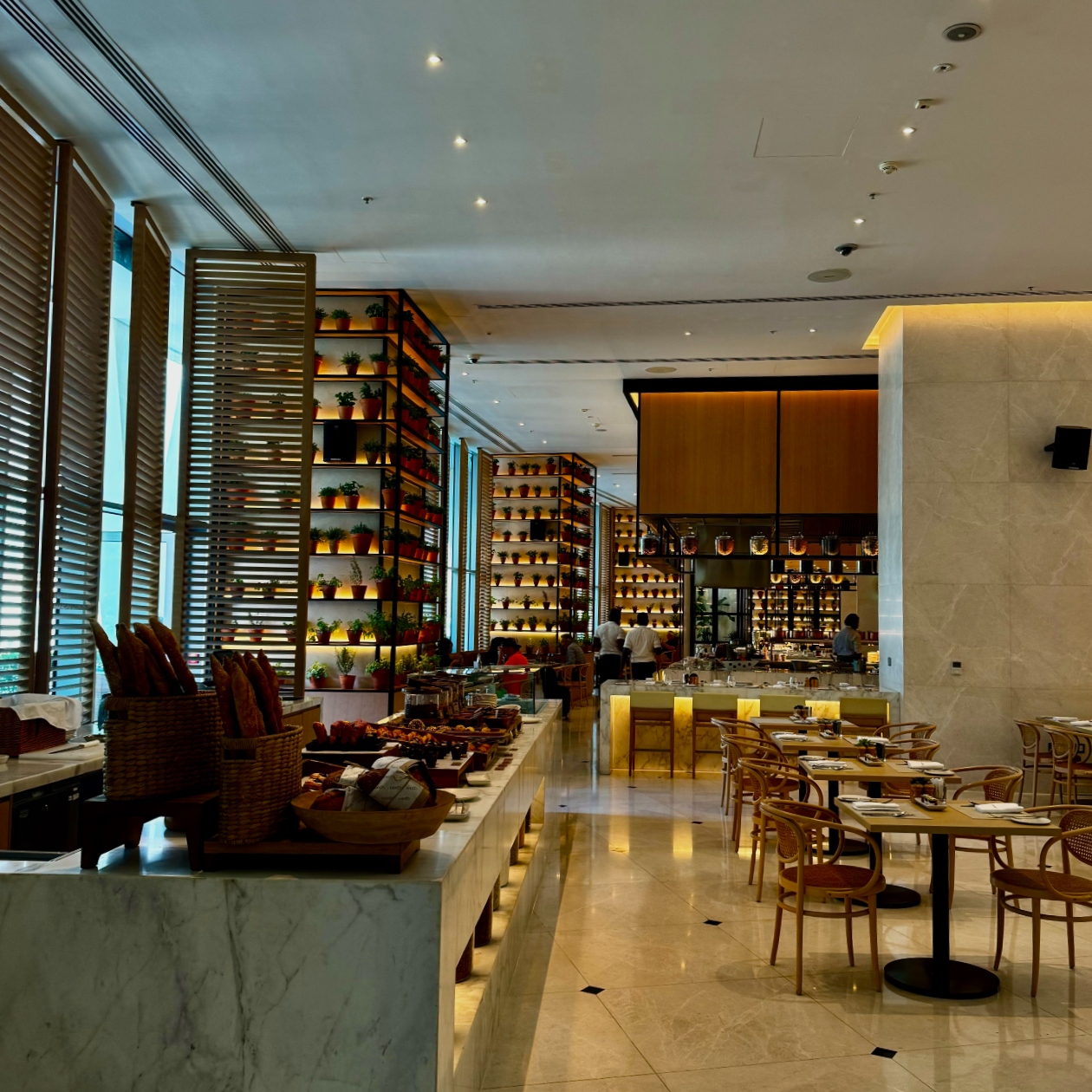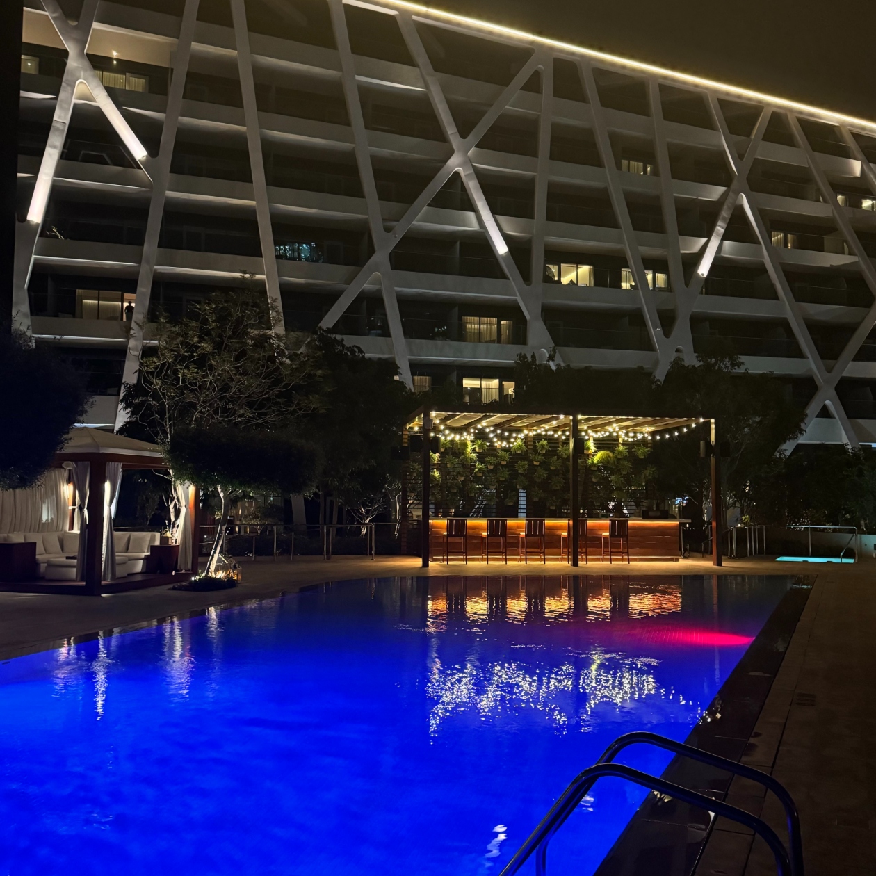 ホテルコンテンツも充実しています。旬の素材を活かした料理を楽しめるオールデイダイニング「Market at EDITION」、落ち着いた空間で上質なカクテルやウイスキーを堪能できる大人の隠れ家的なバー「Library Bar」、重厚感のあるインテリア、熟成肉を中心とした上質な料理、豊富なワインリストで美食家を唸らせるステーキハウス「Oak Room」、ほかにもコーヒーショップやプール、ラウンジと一通り利用させていただきました。ホテル全体の印象としては、他のEDITIONと比較してデザインのテンションが抑え目だと感じました。アブダビという地域が持つ特性に合わせた結果なのかもしれません。落ち着いた雰囲気を楽しみたい方にはぴったりのホテルだと思います。