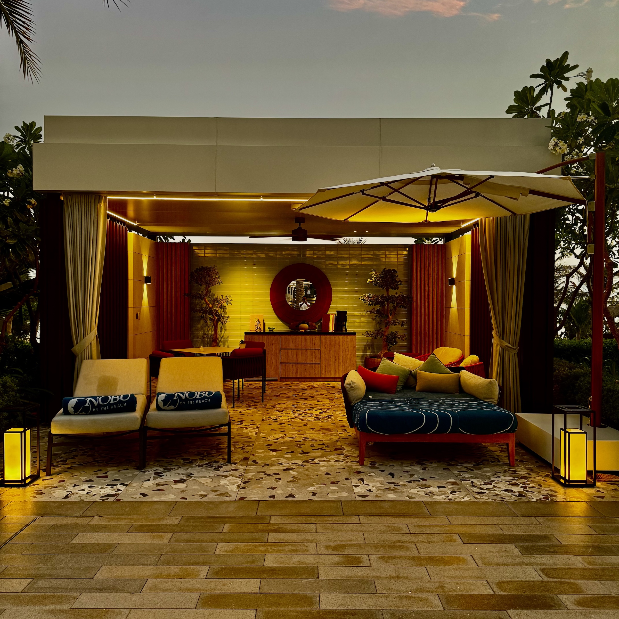 プールの一つは「NOBU」が運営しているもので、プールサイドで提供される食事もベッドタオルのロゴも全て「NOBU」で統一されています。「LING LING」での食事の後、カウンター席で一杯だけいただきましたが、多くのゲストで賑わっていましたね。ちなみに、中東のレストランは19時以降からディナータイムがスタートすることが多くなっています。