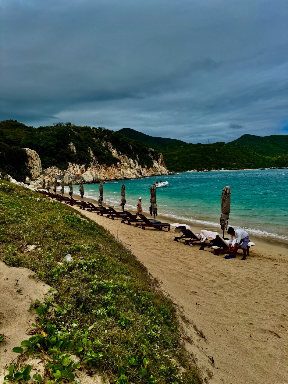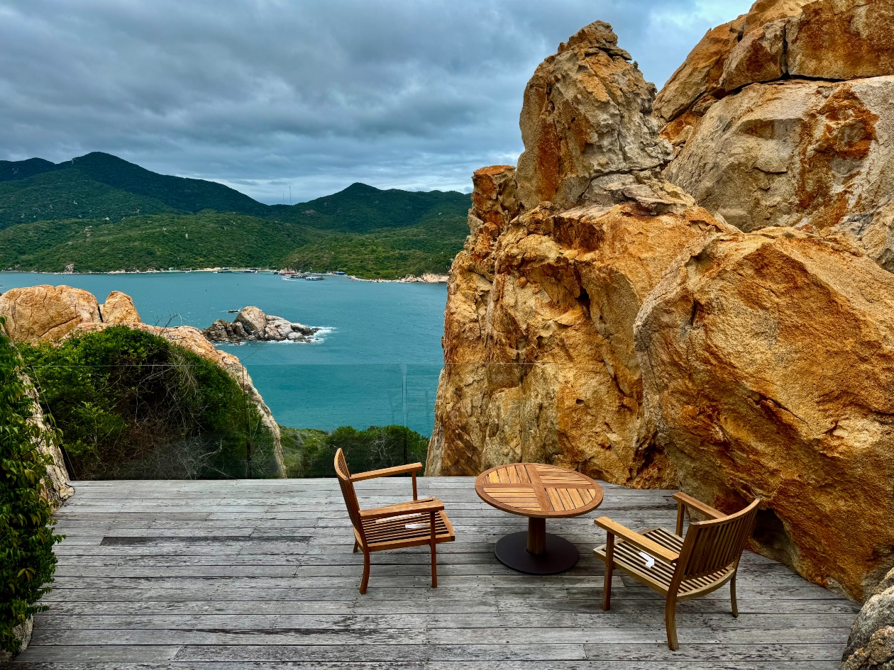 2013年、ヴィン・ヒー湾を一望できる海と山に挟まれた秘境に誕生したのが、アジアで10番目のAMANである、このAmanoiです。世界でその名の知られるホテリエ エイドリアン・ゼッカが創業したAMANは「都市の喧噪から隔絶された避難所」がコンセプト。このAmanoiも都市部から離れた目的型滞在を実現しています。世界各地のAMANの名称は「AMAN+α」で構成されることが多いですが、Amanoiの「oi」はベトナムの言葉で「場所」「所処」といった意味を持つとのこと。AMANがサンスクリット語の 「amaṇa (平静・静寂)」に由来するので、Amanoiは「静かな場所」「安らぎの地」といった意味合いになるそうです。