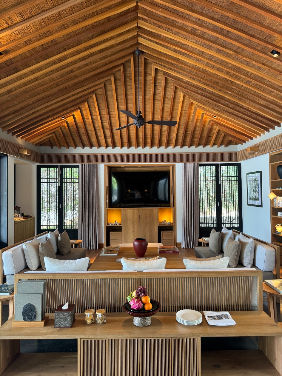 宿泊棟にはPavilionとVillaの2つのタイプがあります。Pavilionはいわゆるスイートに近いもので、Amanoiにおける基本のゲストルーム。すべてが独立した造りとなっており、AMANらしい静謐な建築美が堪能できます。一方のVillaはPavilionに比べてよりラグジュアリーで、長期滞在にも適したプライベートヴィラです。私たちが選んだのは1,000㎡を超える広さを持つVilla。25mプールのあるリビング棟、マスタールーム棟、ゲストルーム棟が備わっており、滞在中の身の回りのケアを担ってくれる専属バトラーも付いてくれました。滞在中、少し体調を崩してしまったのですが、バトラーがジンジャーティーやスープを用意してくれて、その温かい気遣いが嬉しかったですね。