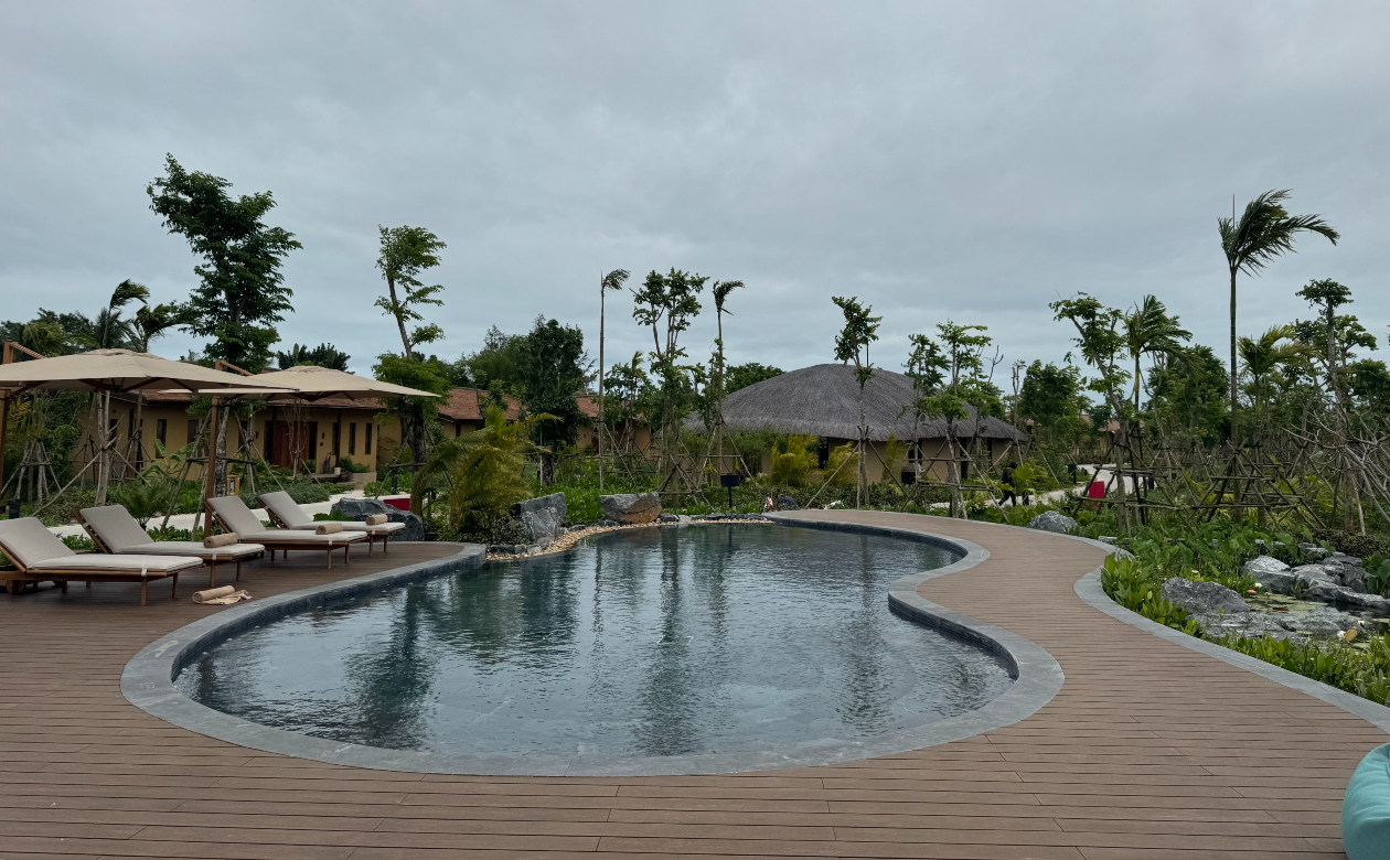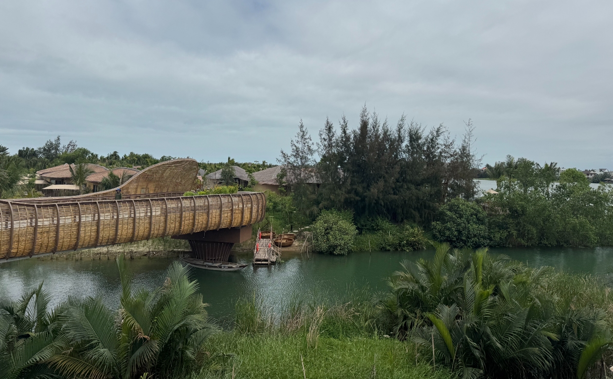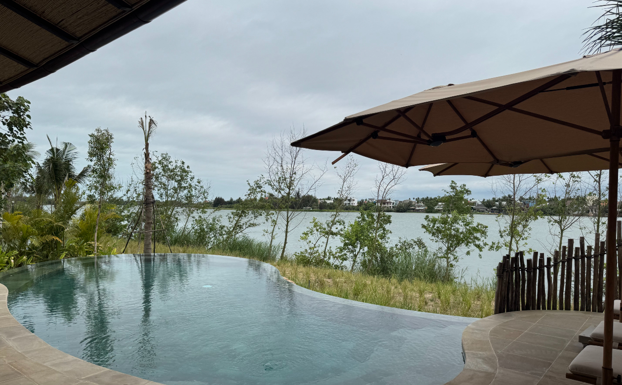 今回訪れたNamia River Retreatは、そのホイアンからほど近いトゥボン川に浮かぶ小さな島に誕生した新しいウェルネスリゾートホテルです。開業は2024年12月。私が訪問した時は開業から3ヶ月ほどしか経っておらず、敷地内ではまだランドスケープの工事が進められていました。